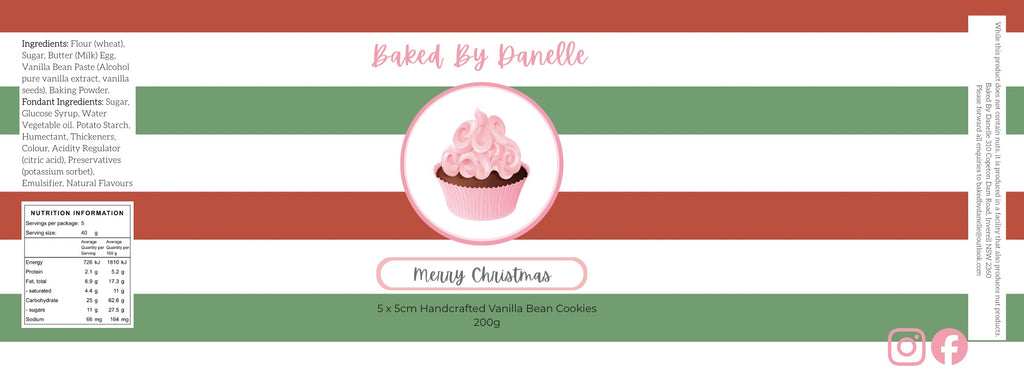 Flour (wheat), Sugar, Butter (milk), Egg, Vanilla Bean Paste (alcohol, pure vanilla extract, vanilla seeds), Baking Powder.